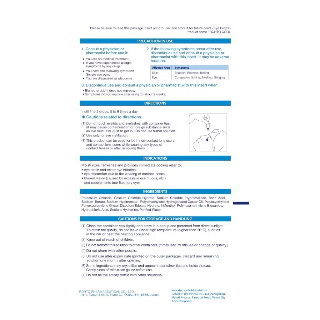 ROHTO EYE DROPS can be safely used by both children and adults. It contains the right amount of minerals and moisturizing ingredients to help remove eye discomfort for people of all ages.